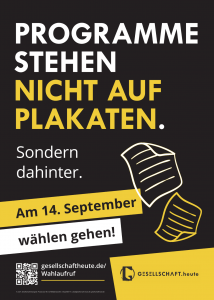 Für weitere Informationen oder die Zusendung von Plakaten, kontaktieren Sie uns gerne über jetzt@gesellschaftheute.de.